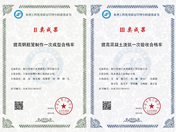 環保集團下屬浙錢水建公司榮獲多個“QC”成果獎