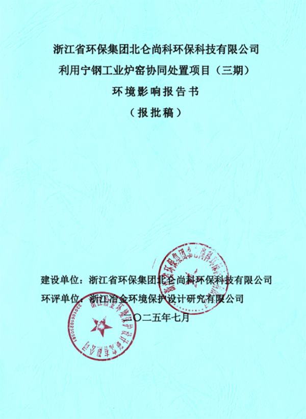 7月29日,尚科環保成功取得《寧波市生態環境局關于浙江省環保集團北侖尚科環保科技有限公司利用鋼鐵工業爐窯協同處置項目(三期)環境影響報告書的審查意見》(甬環建〔2025〕34號),獲準建設資源化利用焚燒后廢金屬10000噸/年。