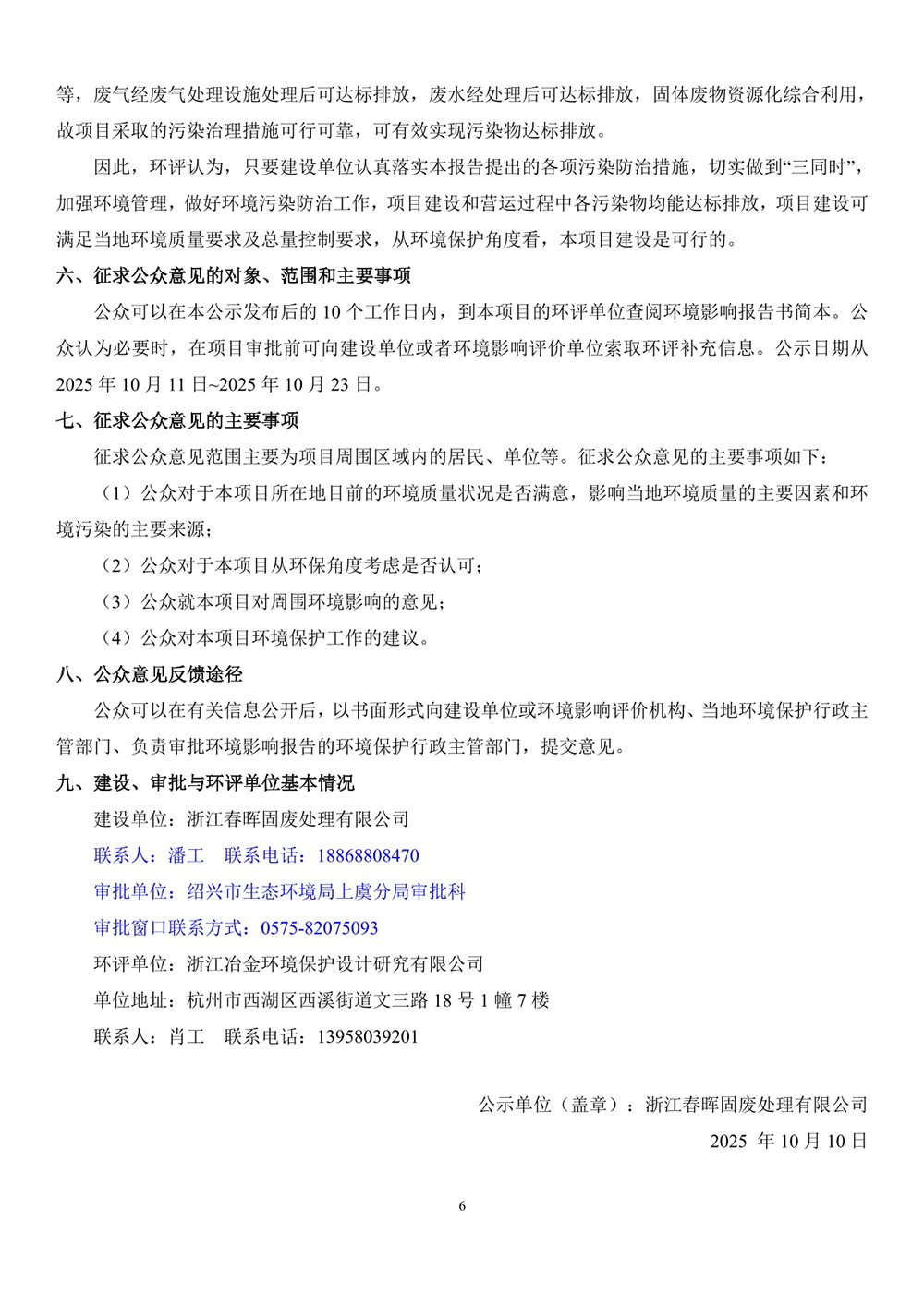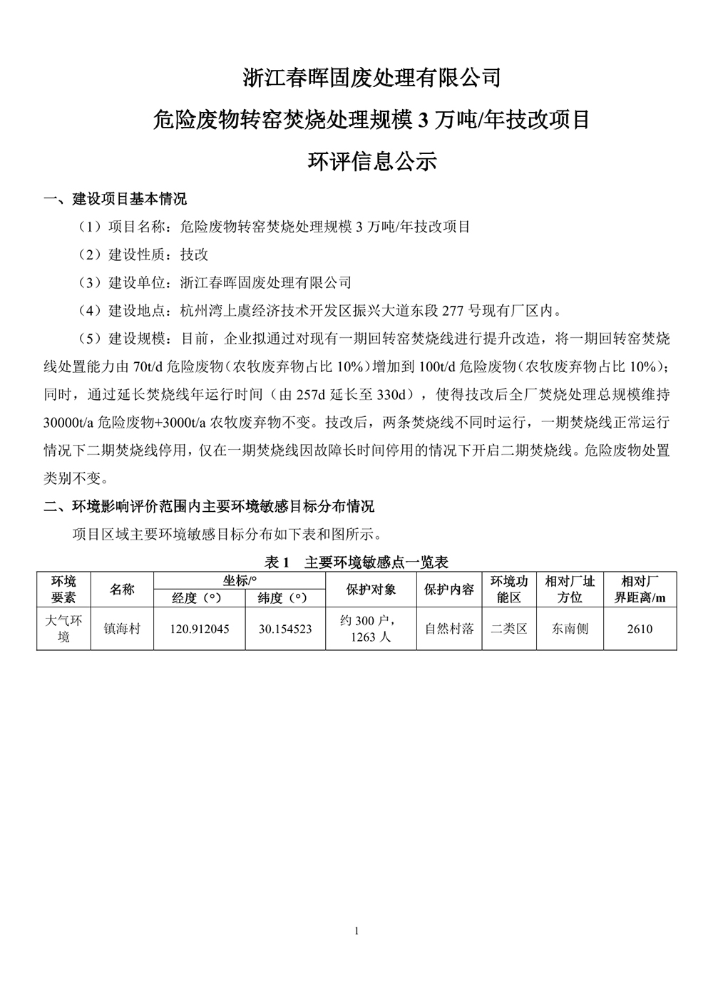 浙江春暉固廢處理有限公司危險廢物轉窯焚燒處理規模3萬噸/年技改項目環評信息公示